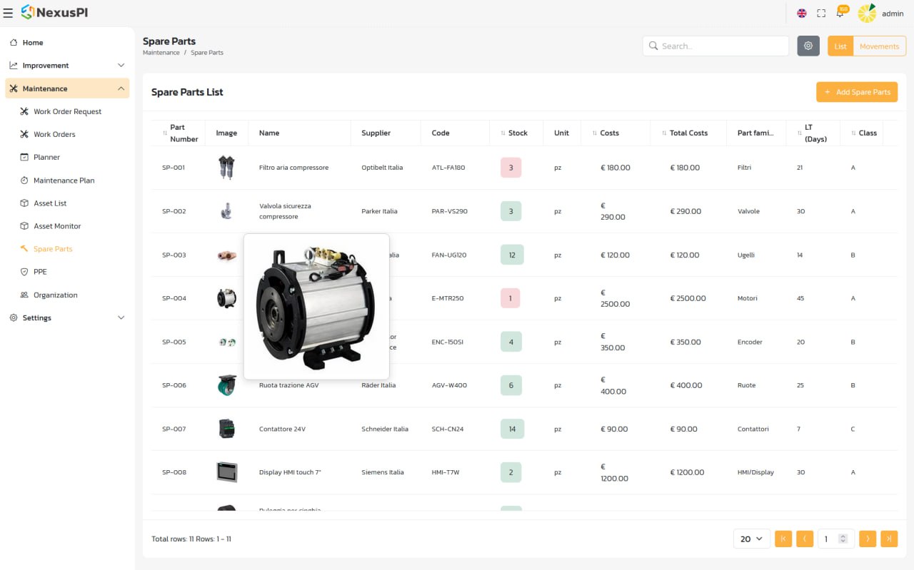 Centralizza la gestione inventario con controllo automatico delle scorte, attiva ordini programmati e garantisci tracciabilita' completa di movimenti e utilizzi. Risultato: riduzione dei tempi di fermo, approvvigionamenti puntuali e maggiore continuita' operativa.